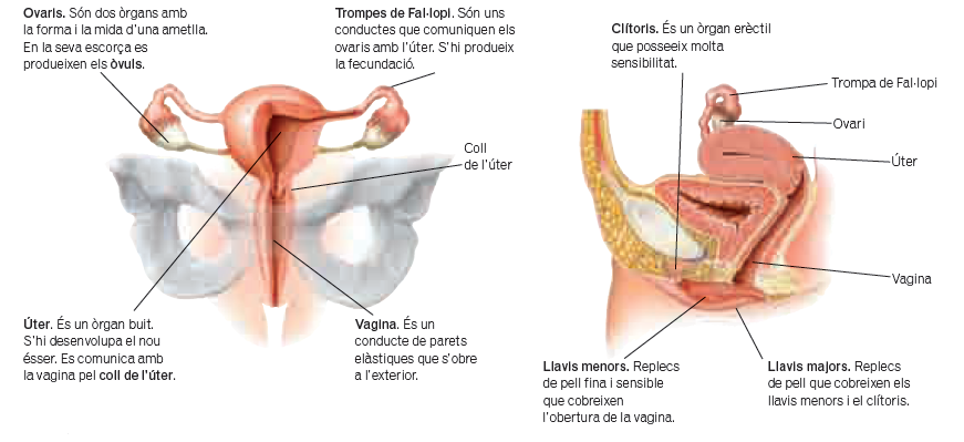 A l'interior de l'aparell reproductor femení es produeixen els òvuls i té lloc la fecundació i el desenvolupament de l'ésser nou.